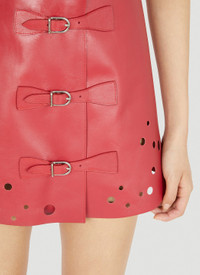 - Leather in a smooth grain finish - Front buckle fastenings - Cut-outs at hem - Asymmetric hem - Made in Italy - 100% Leather. Specialist clean - Color: Red - Code: SS23LSK01