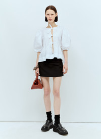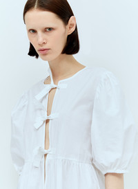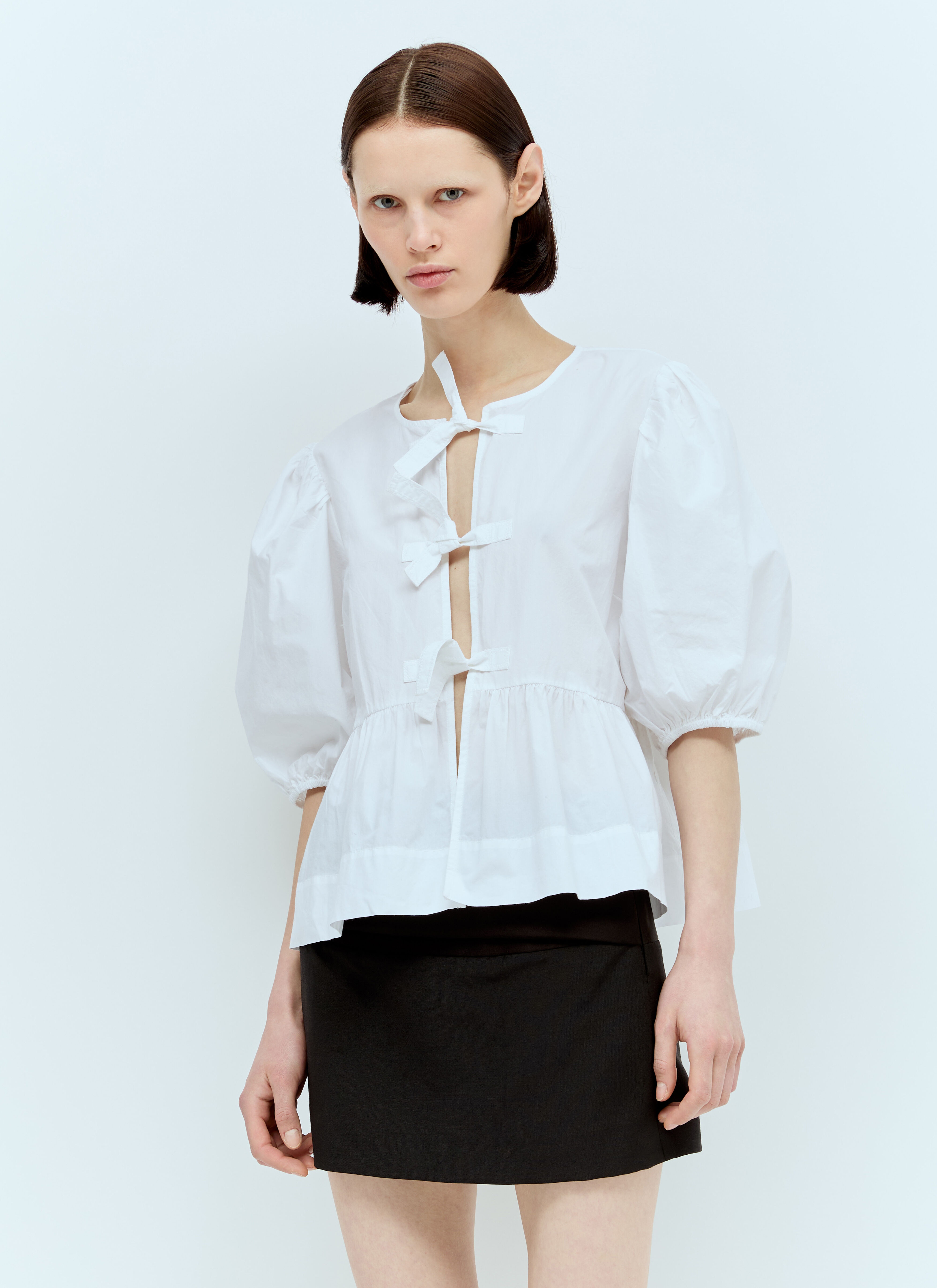 Tie Peplum blouse in cotton poplin - Crewneck - Front self-tie fastening - Short puff sleeves - Elasticated cuffs - Ruffled hem - 100% Organic Cotton - Color: White - Code: F7364 151