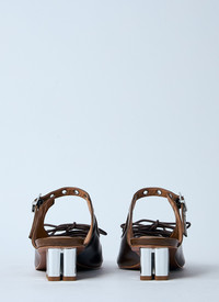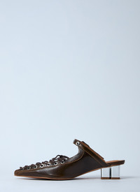 Heeled denim mules in an embellished finish. - Pointed toe - Lace-up and buckle fastening - Block heel - 100% Technical Fabrication Blend - Color: Black - Code: S3092 826