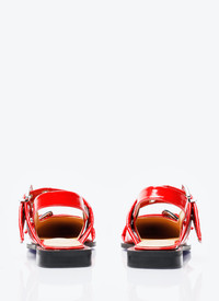 Feminine buckle ballerina flats in high shine finish. - Pointed toe - Buckle-fastening straps - Extended sole - 56% Polyurethane, 44% Recycled cotton - Color: Red - Code: S2843 474