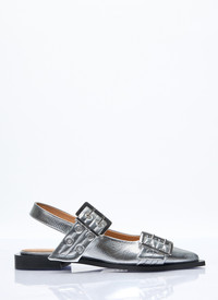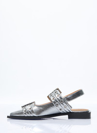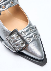 SILVER METALLIC FEMININE BUCKLE BALLERINAS