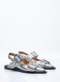 Feminine buckle ballerina flats in high shine finish. - Pointed toe - Buckle-fastening straps - Extended sole - 40% Rec. polyester, 18% Rec. polyurethane, 18% Polyurethane, 14% Others, 10% Wool - Color: Silver - Code: S2725 018