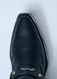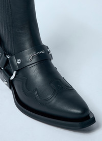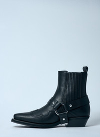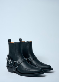 Low-cut western chelsea boots in recycled leather blend. - Pointed toe - Elasticated side panels - Buckle-embellishment - Rear pull tab - Block heel - 45% Recycled leather, 20% Recycled polyester, 20% Polyurethane, 15% Polyester - Color: Black - Code: S2744 099