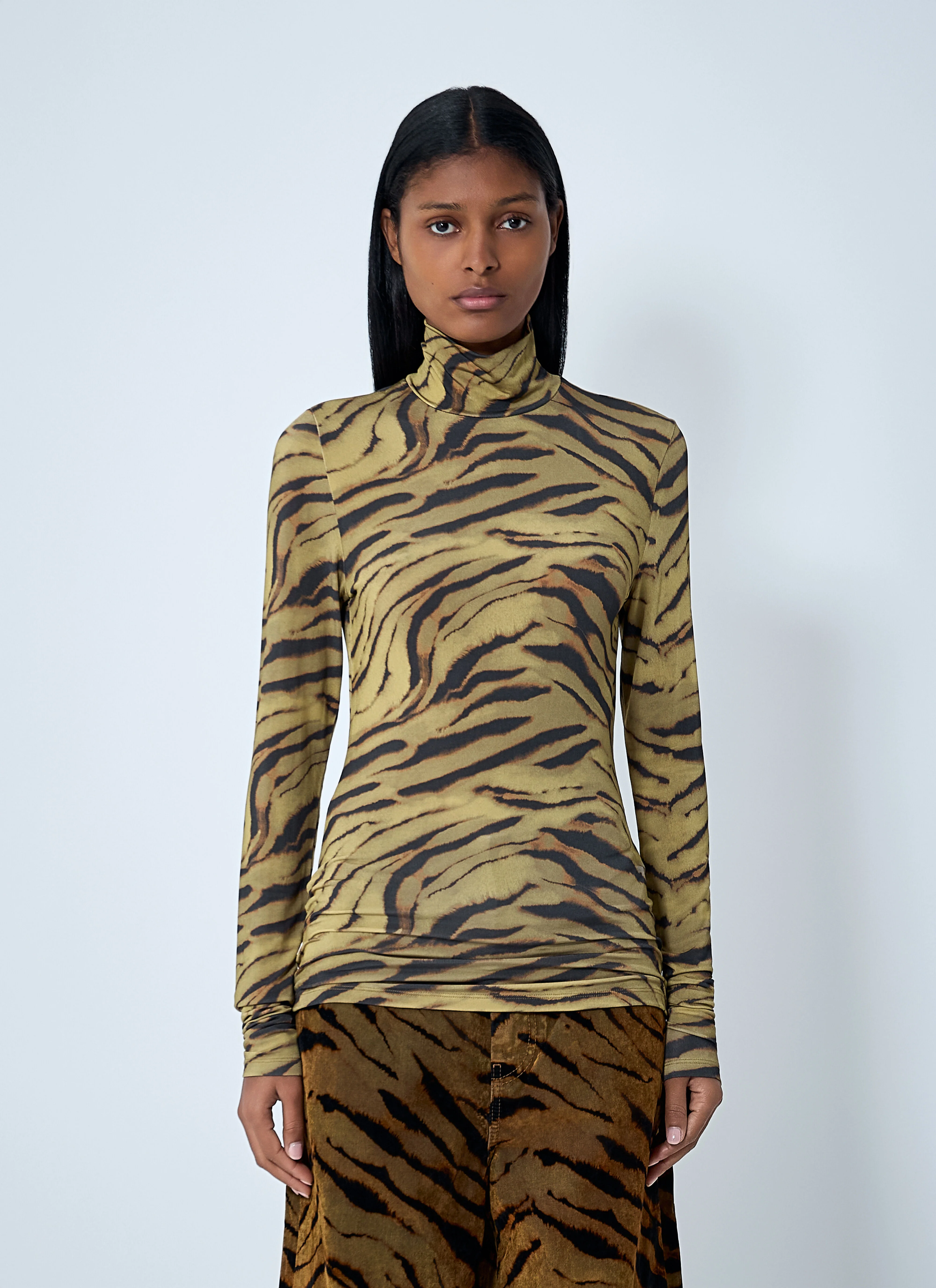 Turtleneck top in stretch jersey with long sleeves. - Turtleneck - Long sleeves - Printed - 95% Viscose, 5% Elastane. Dry clean - Color: Khaki - Code: T4382 894