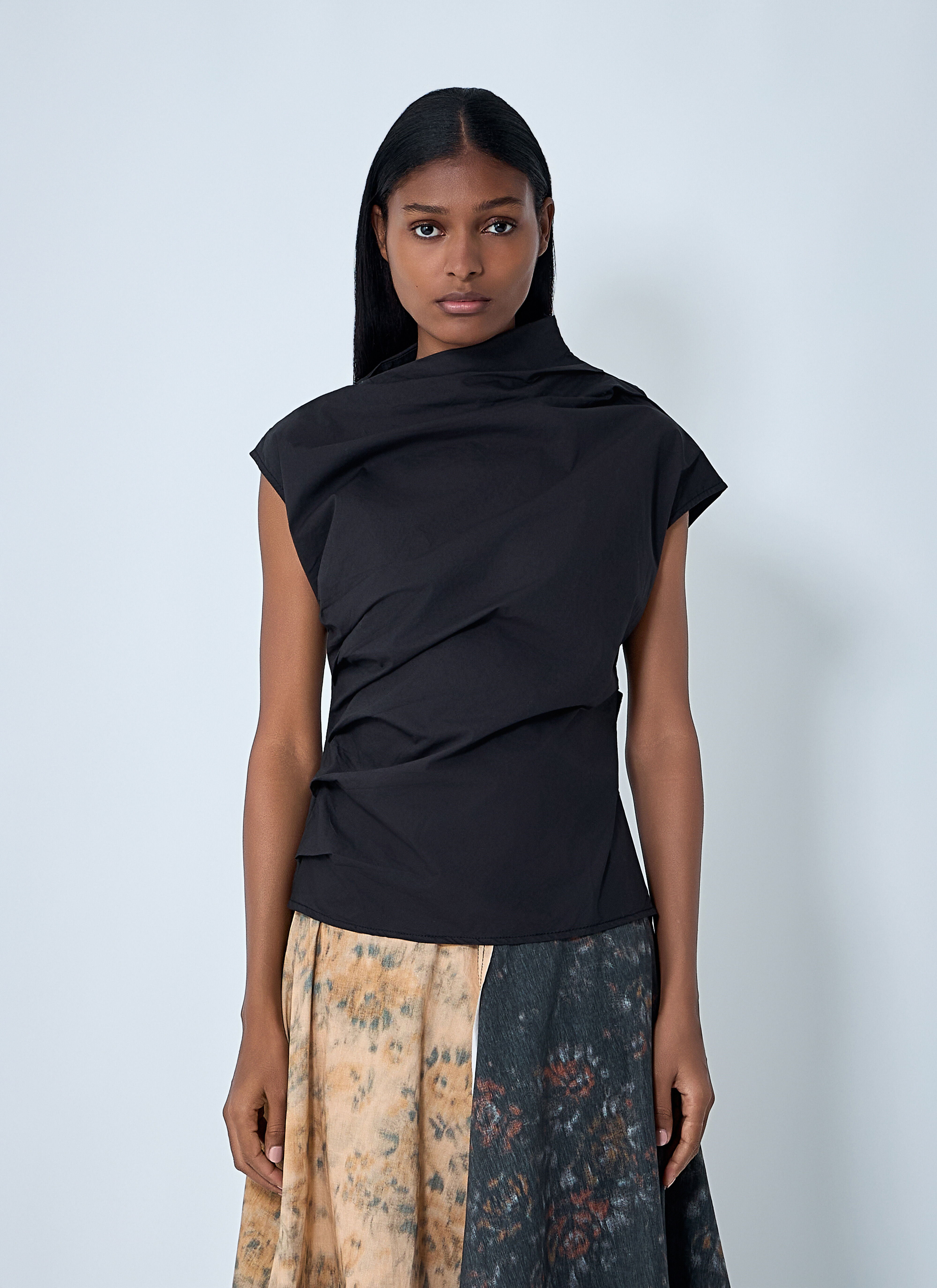 Ruched top in a stretch finish. - Highneck - Cap sleeves - Ruched - 97% Cotton, 3% Elastane. Hand wash - Color: Black - Code: W1113 099