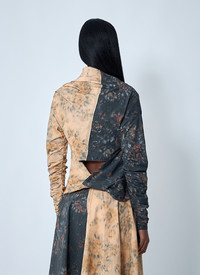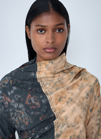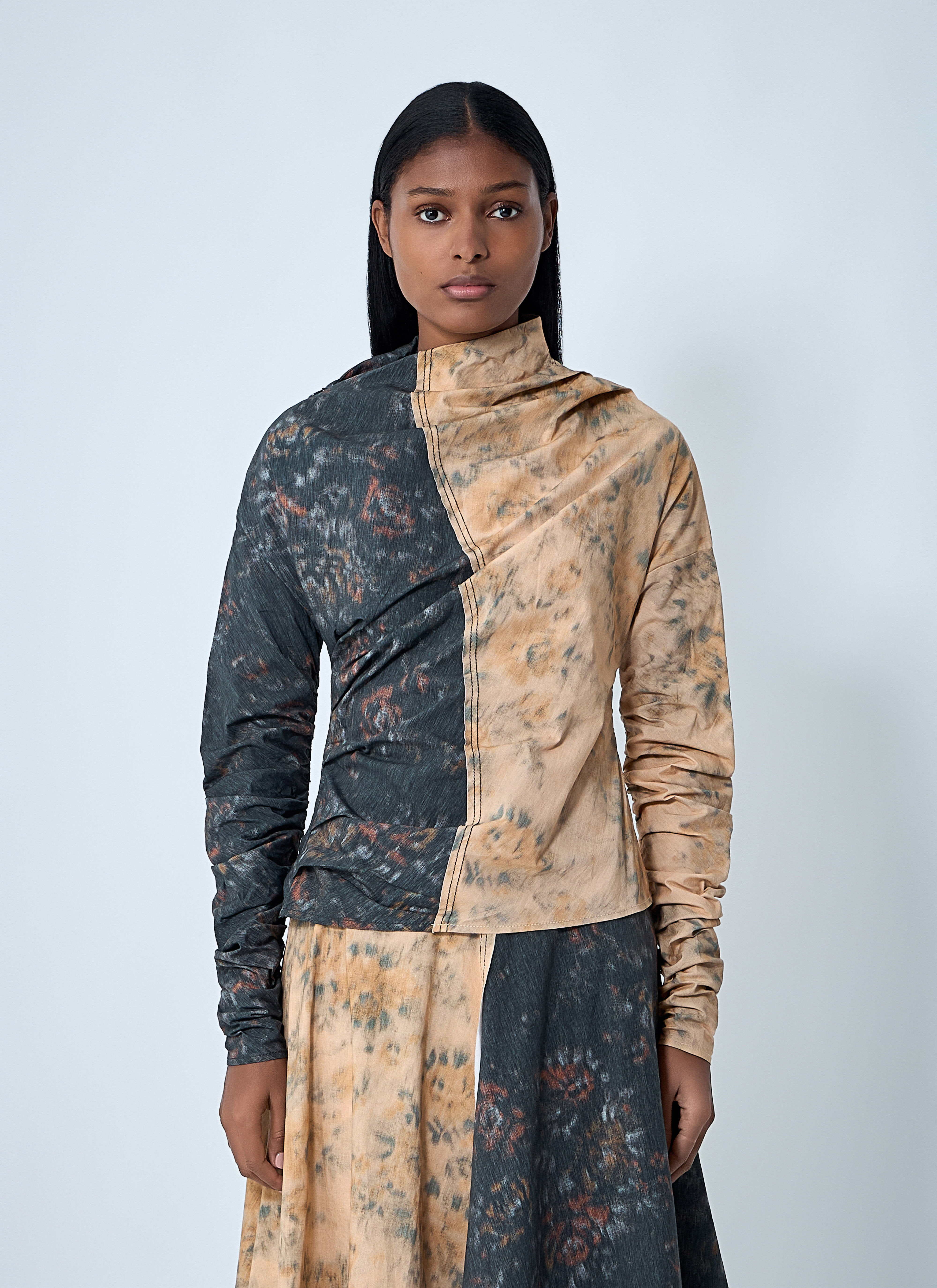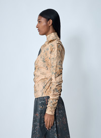 Ruched top in a stretch finish. - Highneck - Long sleeves - Contrast panels - Ruched - 97% Cotton, 3% Elastane. Hand wash - Color: Beige - Code: W1021 999