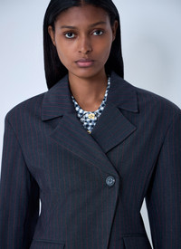 Single-breasted blazer in stripe stretch weave. - Notched lapels - Single-breasted button fastening - Long sleeves - Side slip pockets - Fully lined - 62% Polyester, 32% Viscose, 6% Elastane. Dry clean - Color: Grey - Code: W0578 252