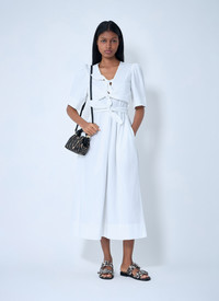 WHITE STRETCH COTTON TIE STRAP MIDI DRESS