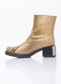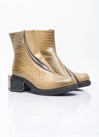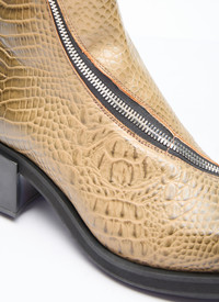 Ergonomic riding ankle boot in embossed crocodile effect. - Round toe - Curved zip fastening - Block heel with engraved metal cap - Logo motif at insole - 100% Technical Fabrication Blend - Color: Beige - Code: FGBHMERA B06YT2