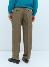 Tailored pants in check wool twill. - Mid rise - Top-button and zip-fly fastening - Belt loops - Adjustable side tabs - Side slip pockets - Central pleats - Rear flap pockets - Rear logo patch - Stitched turned-up cuffs - 100% Wool. Dry clean - Color: Brown - Code: 742768 Z8BJ4 2229