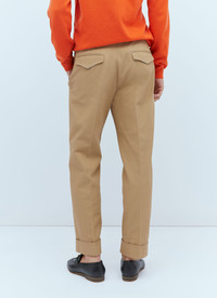 Tailored pants in cotton gabardine. - Mid rise - Top-button and zip-fly fastening - Belt loops - Side slip pockets - Central pleats - Rear flap pockets - Rear logo embroidery - Stitched turned-up cuffs - 100% Cotton. Dry Clean - Color: Beige - Code: 742764 ZAM6X 2578