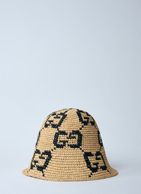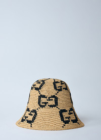 Logo motif bucket hat in raffia. - Flat crown - Dropped brim - All-over logo motif - 100% Cotton - Color: Brown - Code: 795001 3HA1J 9660