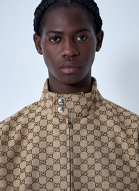 Blouson jacket in GG canvas. - Stand collar - Front zip fastening - Long sleeves - Side slip pockets - Rib trims - 70% Cotton, 30% Polyester. Dry clean - Color: Camel - Code: 826575 ZAF4S 2580