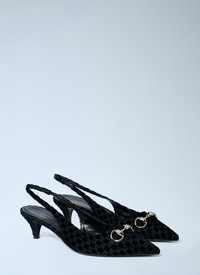 GG slingback pumps in velvet weave. - Pointed toe - Slingback construction with buckle fastening - Kitten heel - 100% Technical Fabrication Blend - Color: Black - Code: 835978 FAETG 1000