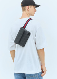GG small belt bag in canvas with leather trims. - Adjustable waist strap - Magnetic-fastening front-flap closure - Logo motif - One main compartment - Made in Italy - 60% Polyurethane, 20% Cotton, 20% Polyester - Color: Black - Code: 792091 FADJA 1042