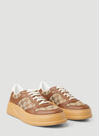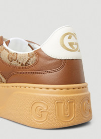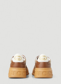 GG Supreme sneakers with leather panels. - Round toe - Lace up fastening - Logo patch at tongue - GG Supreme panels - Contrast heel counter with metallic logo print - Chunky sole with debossed logo at heel - Made in Italy - 100% Leather - Color: Brown - Code: 676092 UPG20 2866