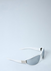 Oval sunglasses with logo hinges. - Oval frames - Tinted lenses - Logo print at lense - Logo hinges - 100% UVA/UVB protection - 100% Technical Blend Fabrication - Color: White - Code: 840033 J1691 9181