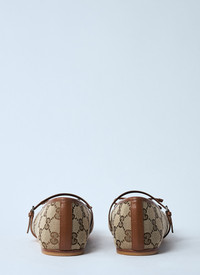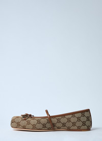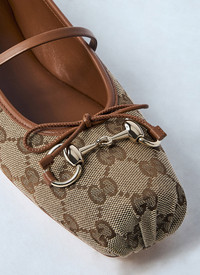 Horsebit ballerina shoes in GG canvas. - Square toe - Top buckle strap fastening - Horsebit plaque - Logo jacquard - Made in Italy - 65% Polyester, 18% Cotton, 17% Polyamide - Color: Beige - Code: 814321 FAD6C 9745