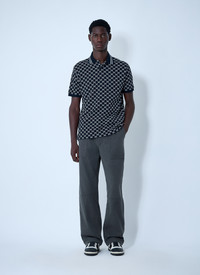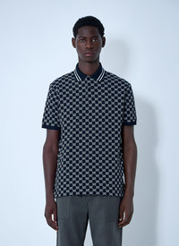 Polo shirt in cotton piquet with all-over logo motif. - Classic collar - Front button fastening - Short sleeves - Logo motif - 100% Cotton. Machine wash cold - Color: Navy - Code: 788024 XJHH7 4137