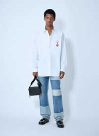 Button-down shirt in cotton poplin. - Classic collar - Front button fastening - Long sleeves - Chest patch pocket with logo embroidery - Button-fastening cuffs - 100% Cotton. Dry clean - Color: White - Code: 833294 Z7AUX 9000