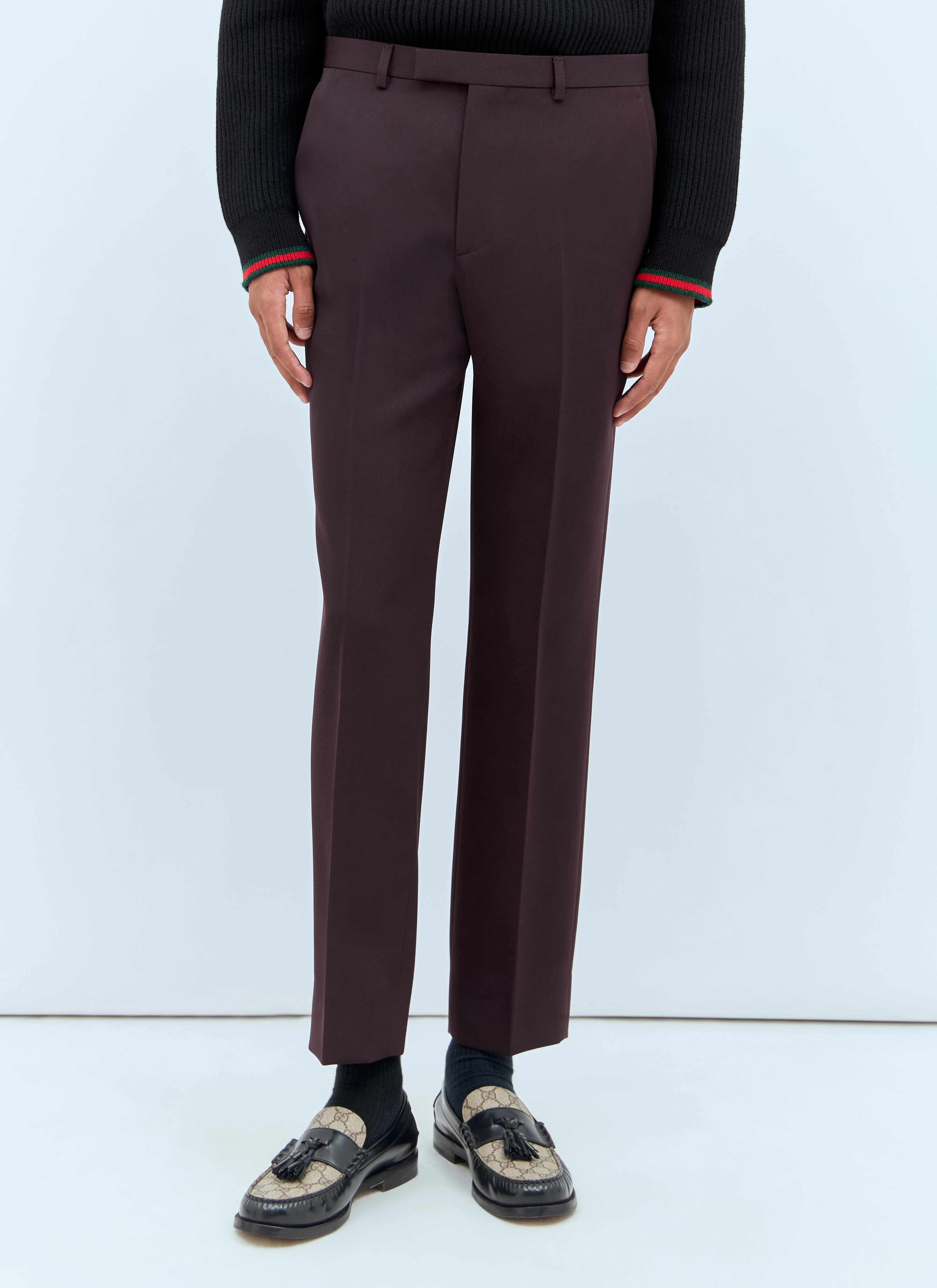 Wool twill pants with rear logo embroidery. - Mid rise - Hook-and-eye zip-fly fastening - Belt loops - Side slip pockets - Rear jet pockets - Made in Italy - 100% Wool. Dry clean - Color: Burgundy - Code: 793801 ZARG8 6417