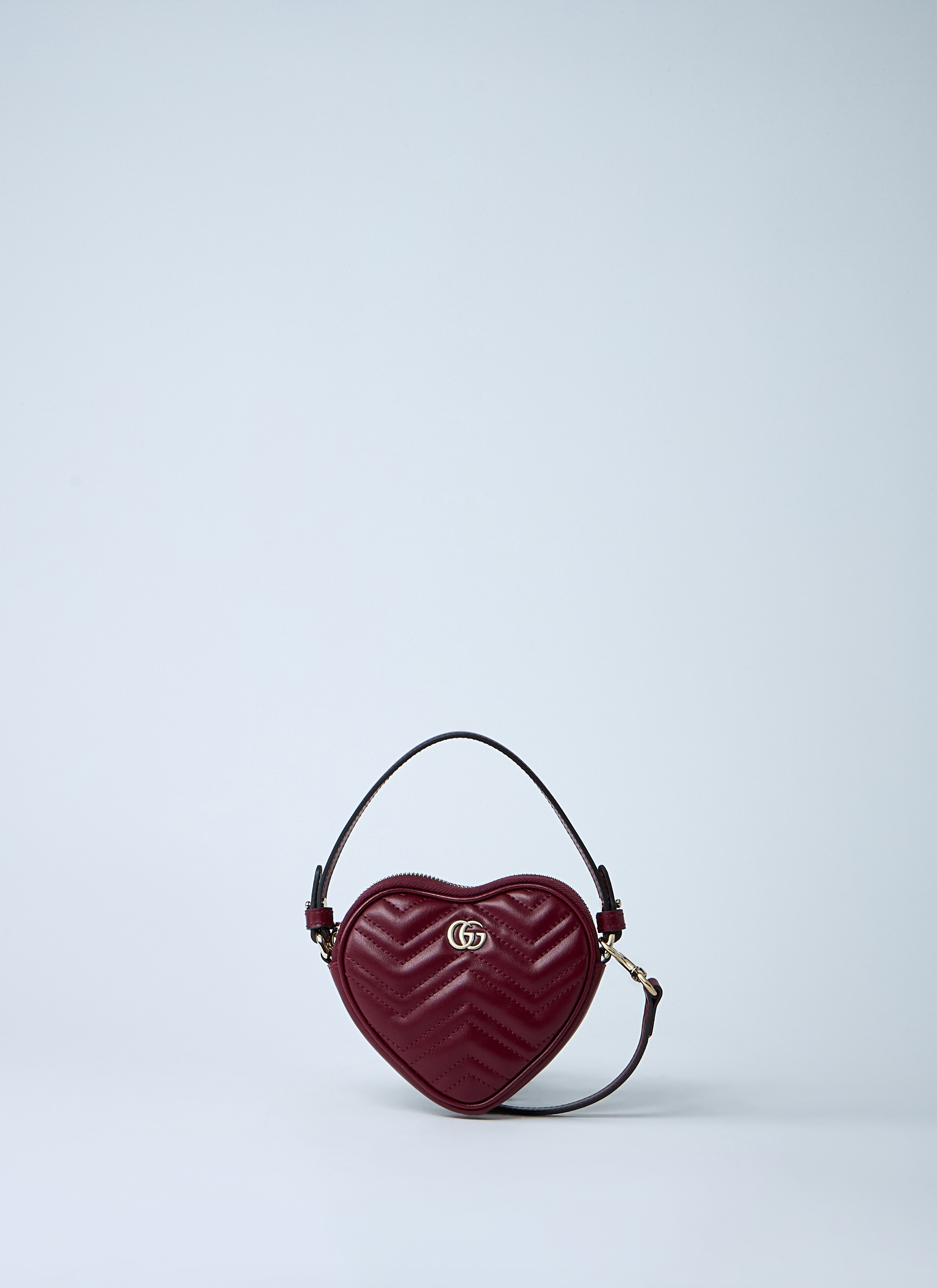 Mini GG Marmont crossbody bag in hear-shape design with a quilted finish. - Detchable and adjustable strap - Top handle - Top zip fastening - Front logo motif - One main compartment - 100% Leather - Color: Bordeaux - Code: 837753 AAET8 6207