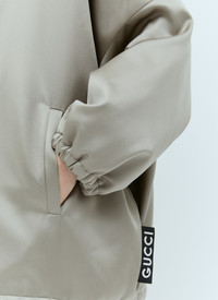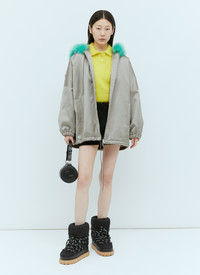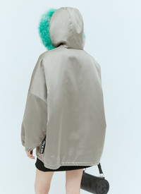 Satin bomber jacket with detachable wool collar. - Hood - Front zip fastening - Dropped shoulders - Long sleeves - Elasticated cuffs - Side slip pockets - Side logo tab - Drawstring hem - Quilted lining - Made in Italy - 100% Polyester. Hood: 100% Wool. Fill: 100% Polyester. Dry clean - Color: Grey - Code: 759525 Z8BMV 1174