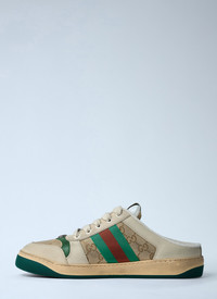 Screener mule sneakers in leather with side Web panel. - Round toe - Lace-up fastening - Logo patch at tongue - Top logo plaque - Logo-embossed panels - Open rear - Made in Italy - 100% Technical Fabrication Blend - Color: Beige - Code: 836063 FAEPQ 9641