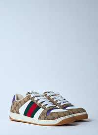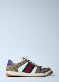 Screener sneakers in GG canvas with side Web panel. - Round toe - Logo patch at tongue - Lace-up fastening - Top logo plaque - Made in Italy - 100% Technical Blend Fabricatiom - Color: Brown - Code: 812638 FAD3U 9752