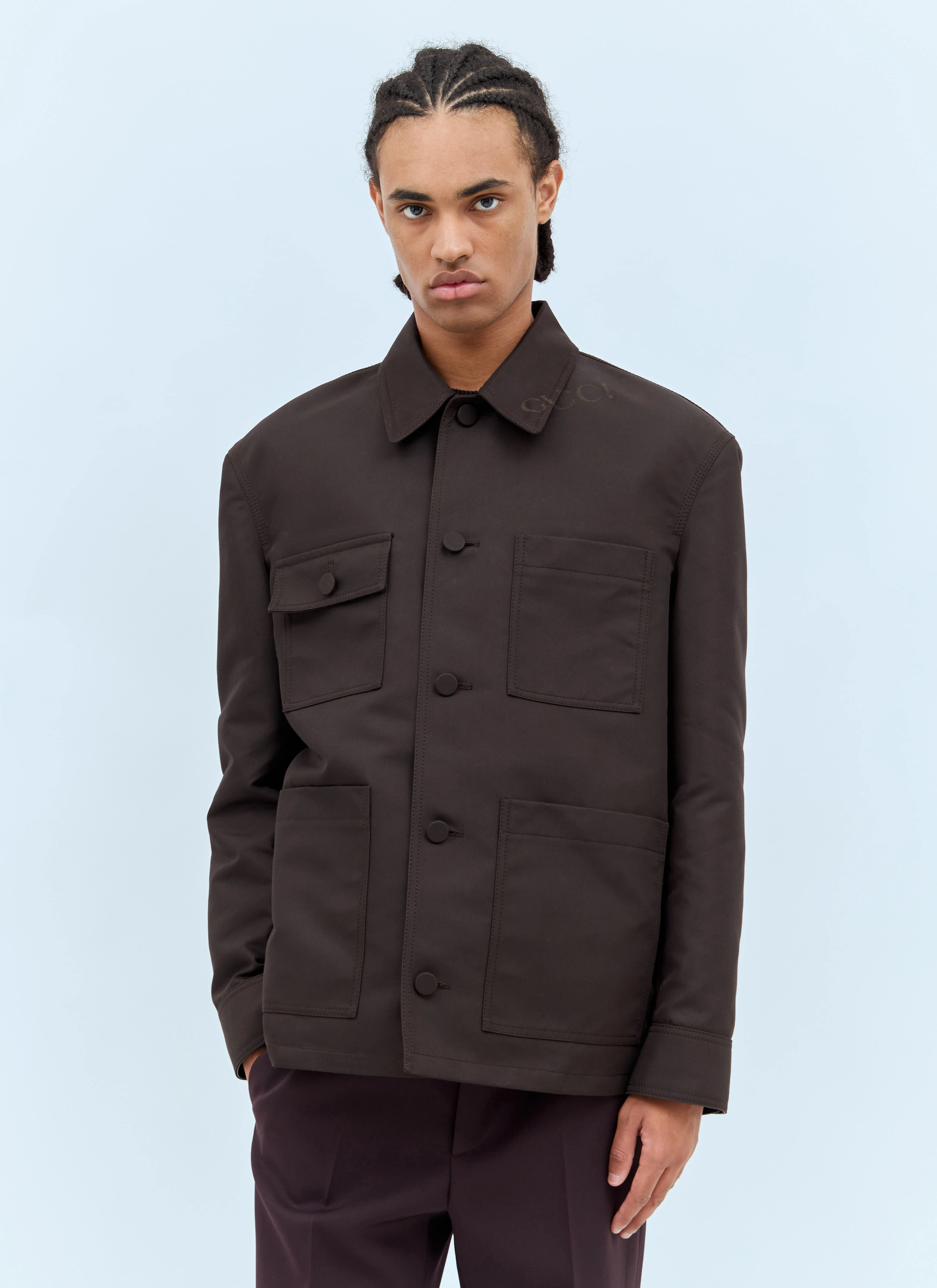 Technical cotton-blend jacket with logo print on the collar. - Classic collar - Front button fastening - Long sleeves - Button fastening cuffs - Front patch pockets - Made in Italy - 69% Cotton, 31% Polyamide, 31% Leather. Dry clean - Color: Brown - Code: 793549 Z8BU3 2206