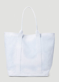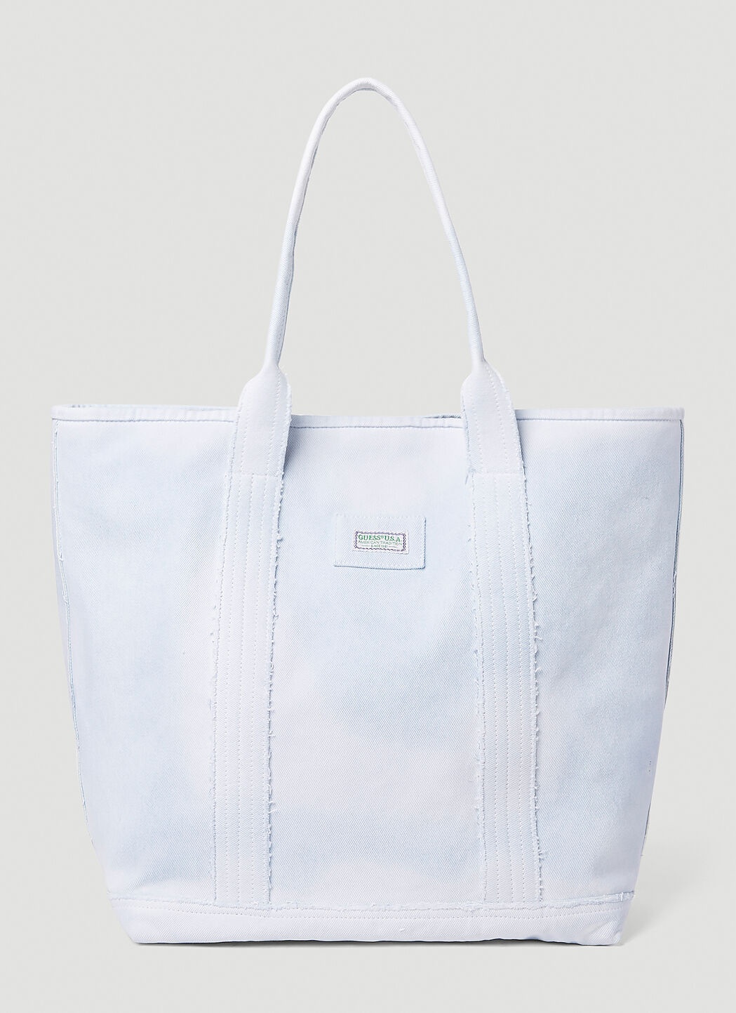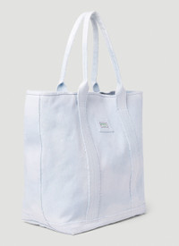 - Cotton in a denim weave - Twin top handles - Top magnetic fastening - Front logo patch - One main compartment - Interior slip pocket - Made in Italy - 100% Cotton - Color: Light Blue - Code: W3GZ37D50K0 F7XW