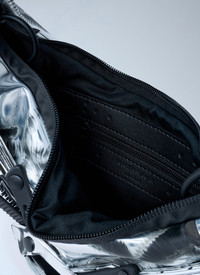 Technical fabrication in a polished finish. - Adjustable strap with signature zip-tie buckle fastening - Top zip fastening - One main compartment - 100% Technical Fabrication Blend - Color: Silver - Code: HM5DSBKPV00