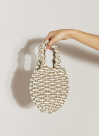 Bullet handbag in braided design. - Criss-crossed top handles - Top drawstring fastening - One main compartment - Fully lined - This item is part of an exclusive capsule collection for LN-CC - 75% Nylon, 25% Elastane - Color: Green - Code: RS24WAC15 SILVER