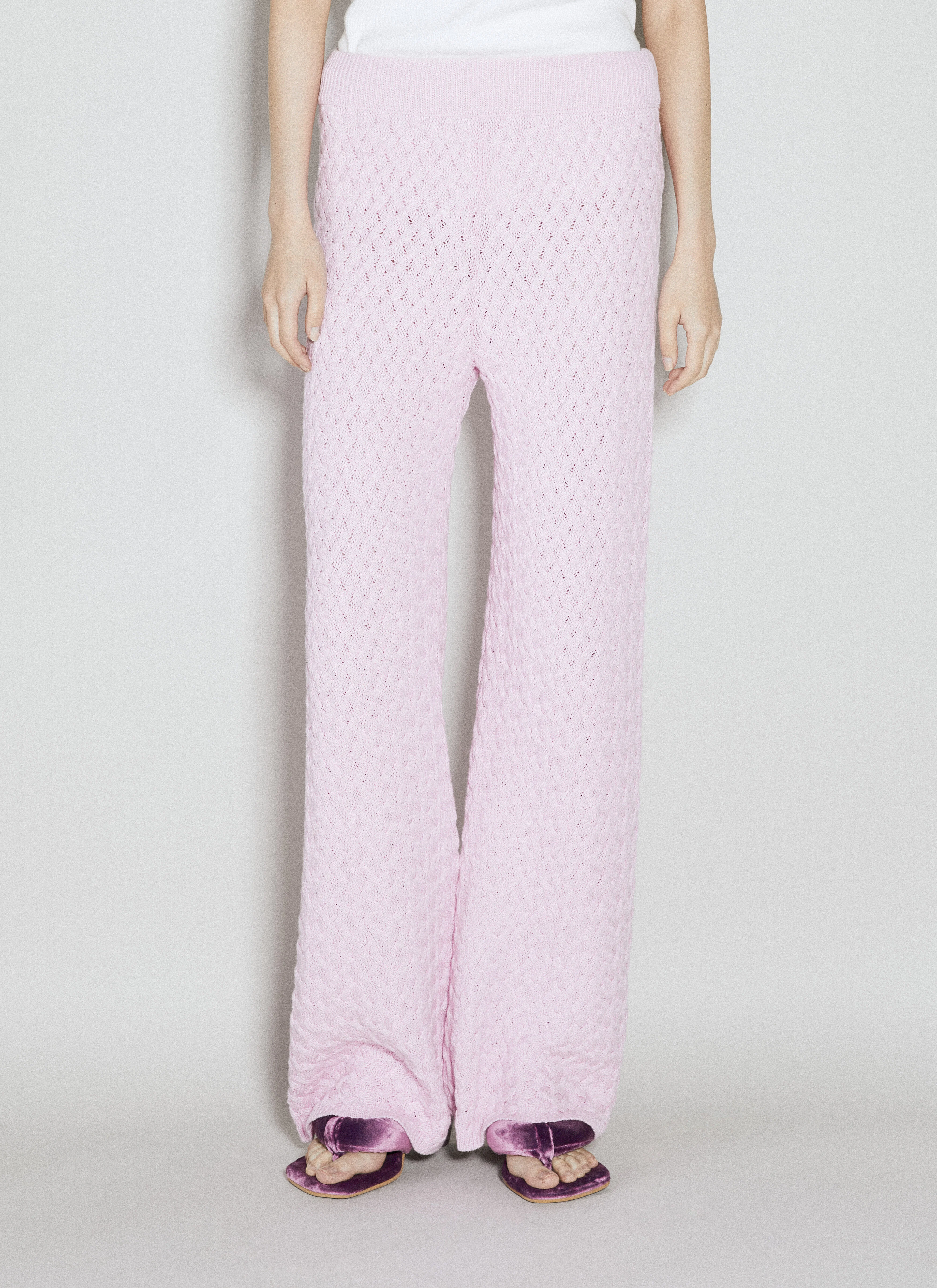 Cableweave wide-leg pants in chunky knit. - Mid rise - Elasticated waistband - Rib cuffs - Rear logo patch - Rear patch pockets - 90% Acrylic, 10% Elastane. Hand wash - Color: Pink - Code: AW23WPT03 COTTONCANDY