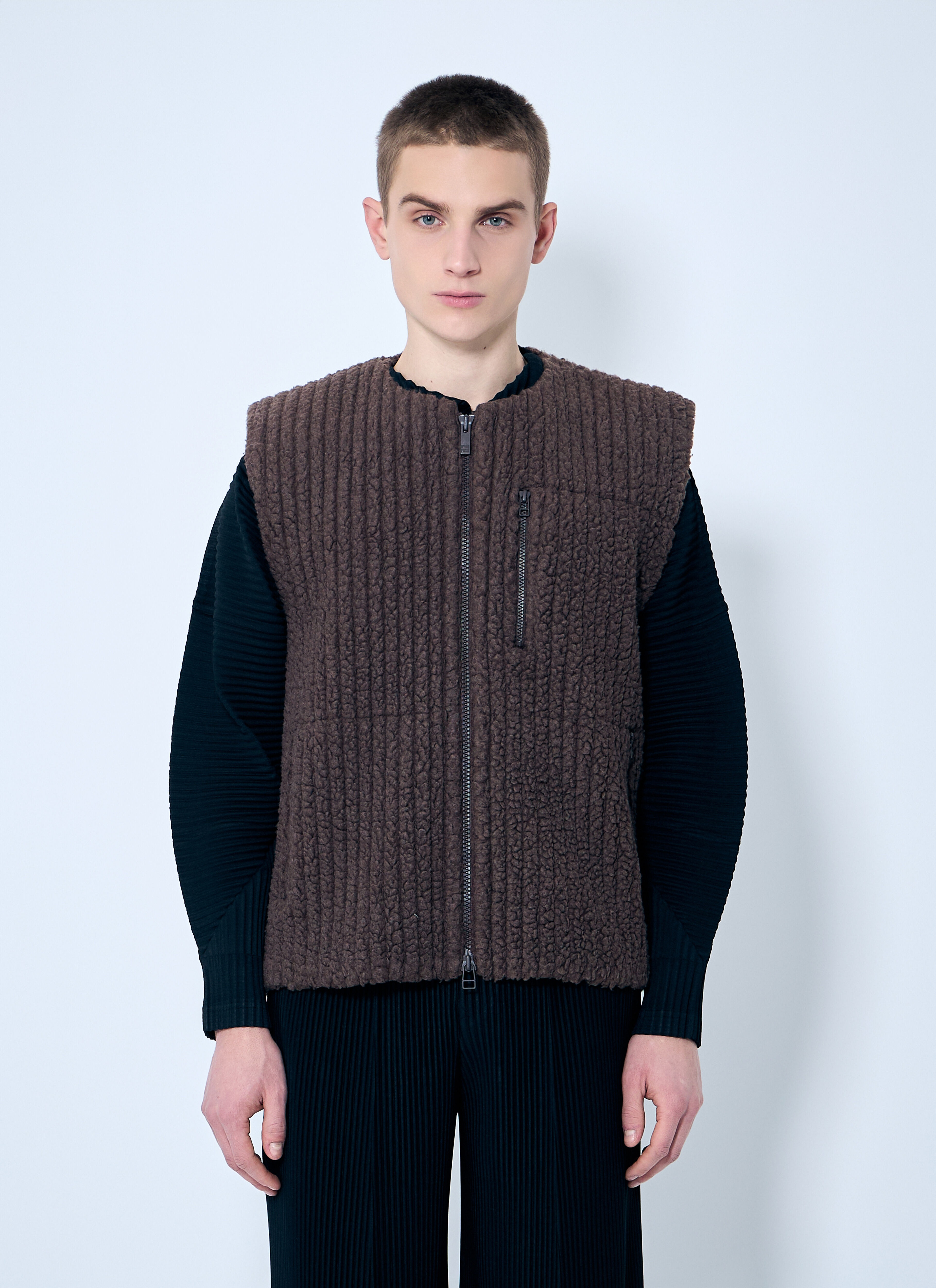 Fleece gilet with pleated lining. - Crewneck - Front zip fastening - Chest zip fastening pocket - 100% Polyester. Hand wash - Color: Brown - Code: HP48JE280 44-BROWN