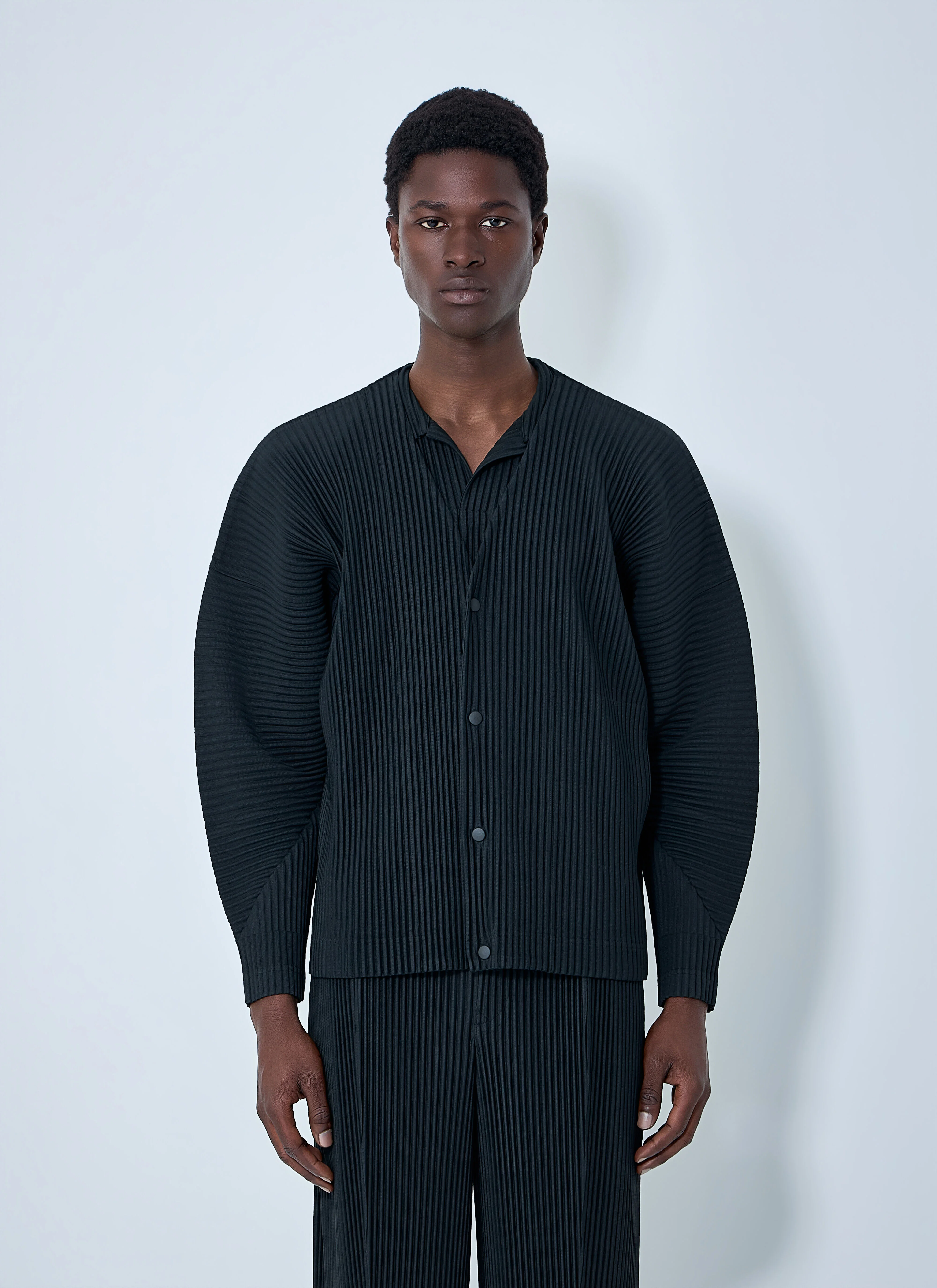 Pleated jacket in structured fabric with button-up fastening. - V-neckline - Long sleeves - Structured pleats - 100% Polyester - Color: Black - Code: HP66JL170 15
