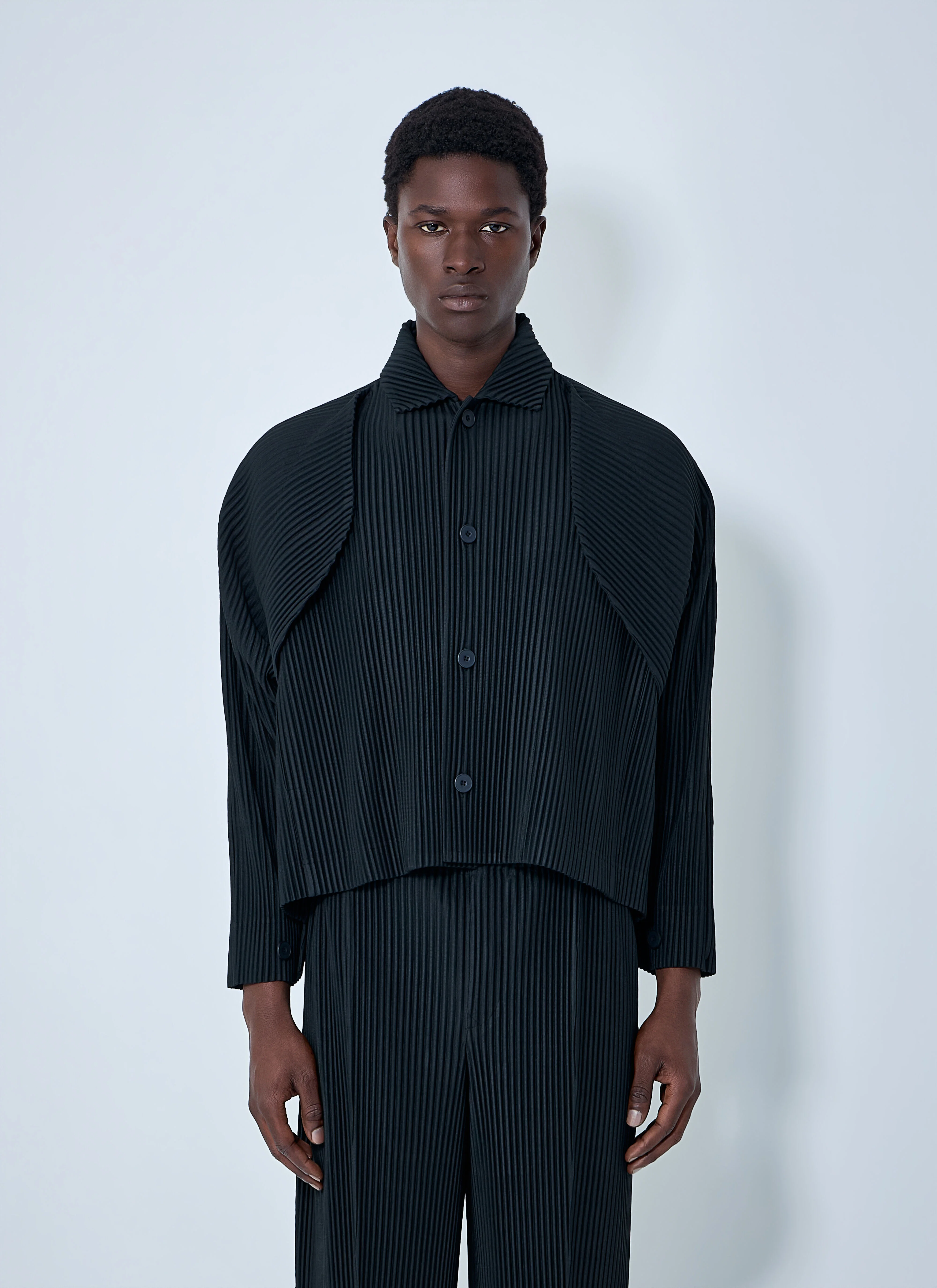 Button-up jacket with structured pleated design. - Classic collar - Front button fastening - Long sleeves - Structured pleats - 100% Polyester - Color: Black - Code: HP66JC201 15