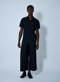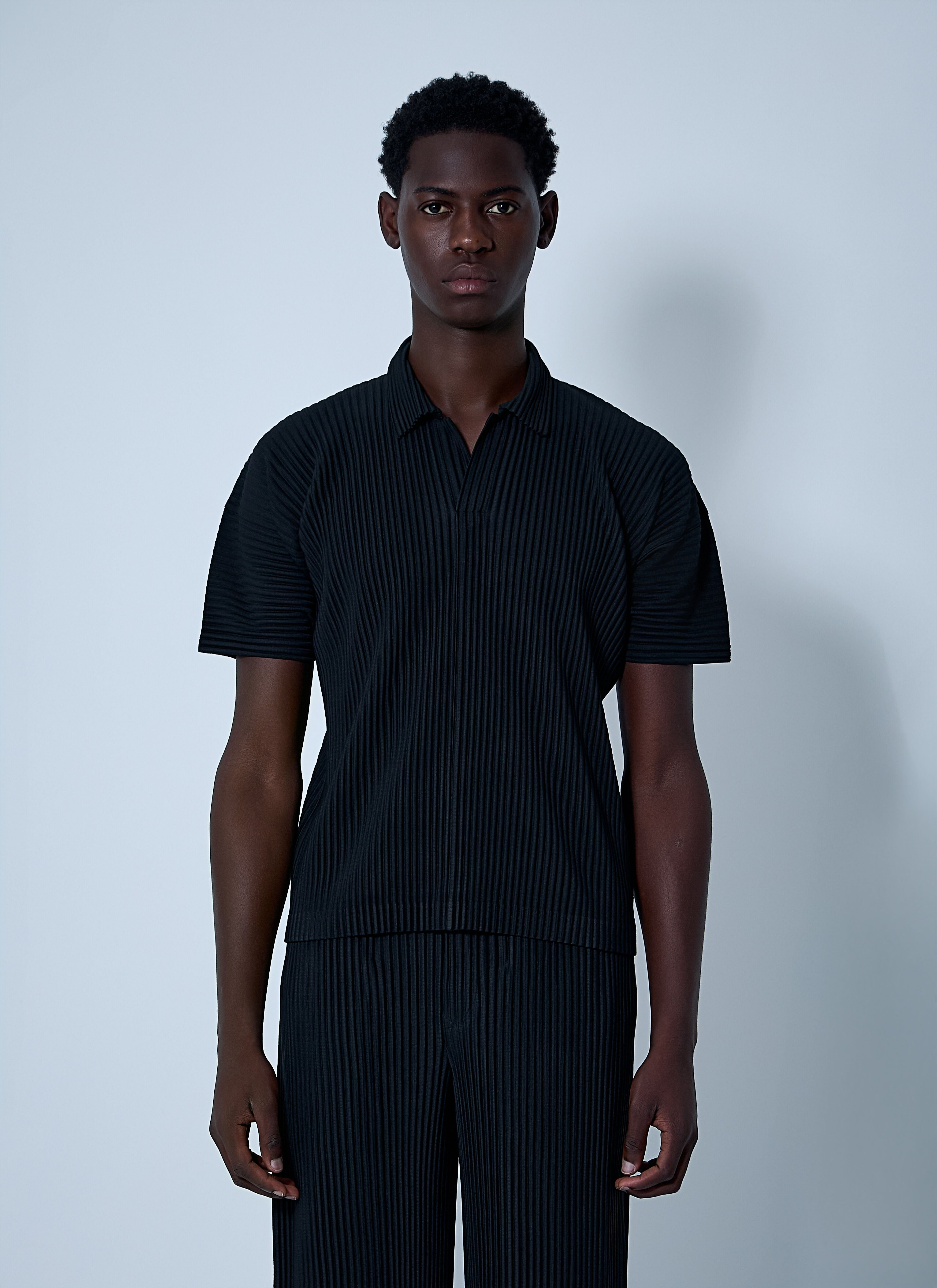 Shirt in pleated construction. - Classic collar - Front button fastening - Short sleeves - 100% Polyester. Dry clean - Color: Black - Code: HP57JM530-15