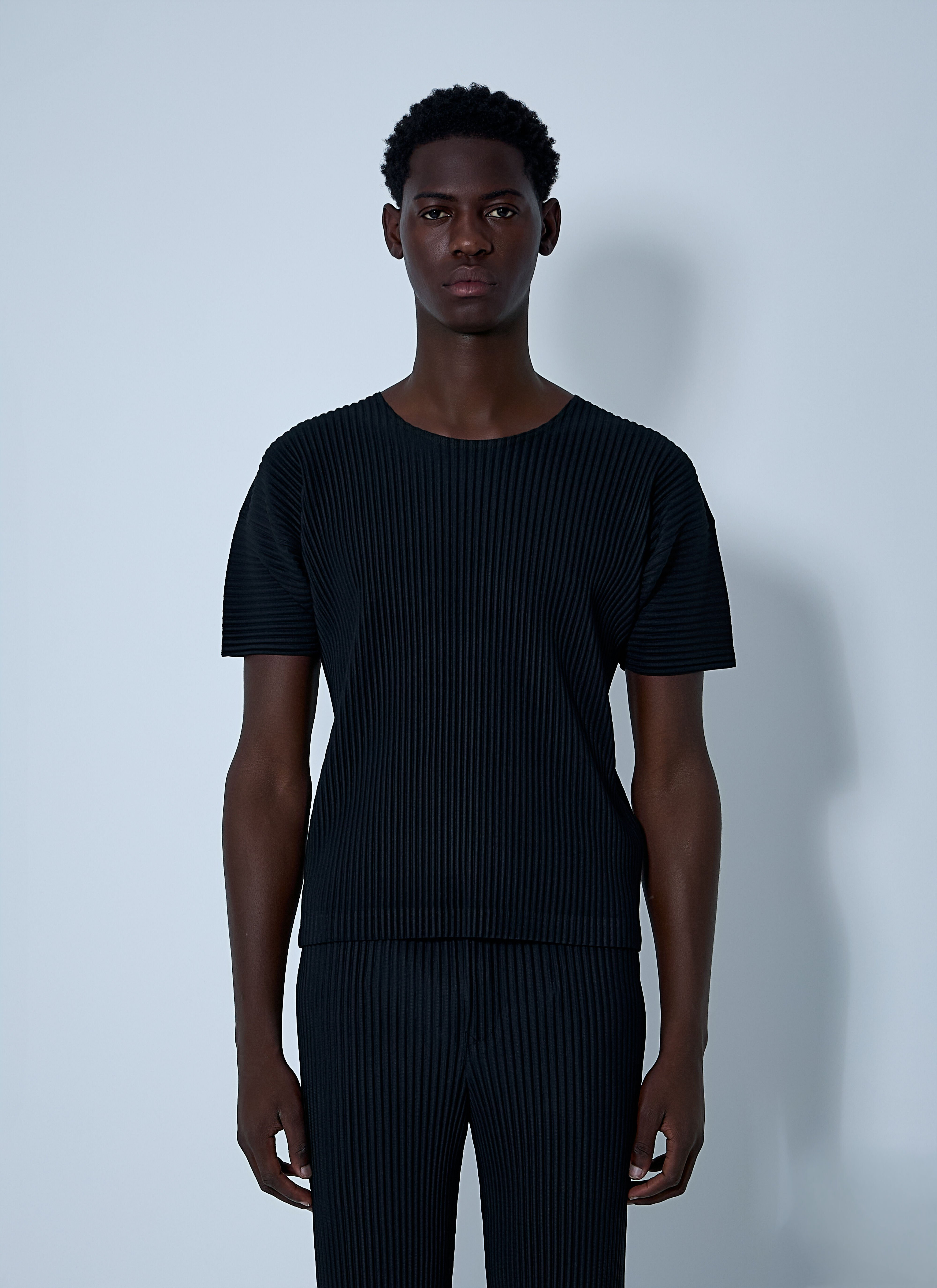 T-shirt in pleated construction. - Crewneck - Short sleeves - 100% Polyester. Dry clean - Color: Black - Code: HP57JK520-15