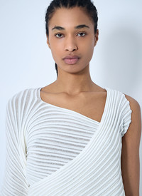 Knit top in ripple technique - Boatneck - Contrast sleeve construction - Draped construction - 52% Polyester, 48% Cotton. Hand wash - Color: White - Code: IM56KN824 06