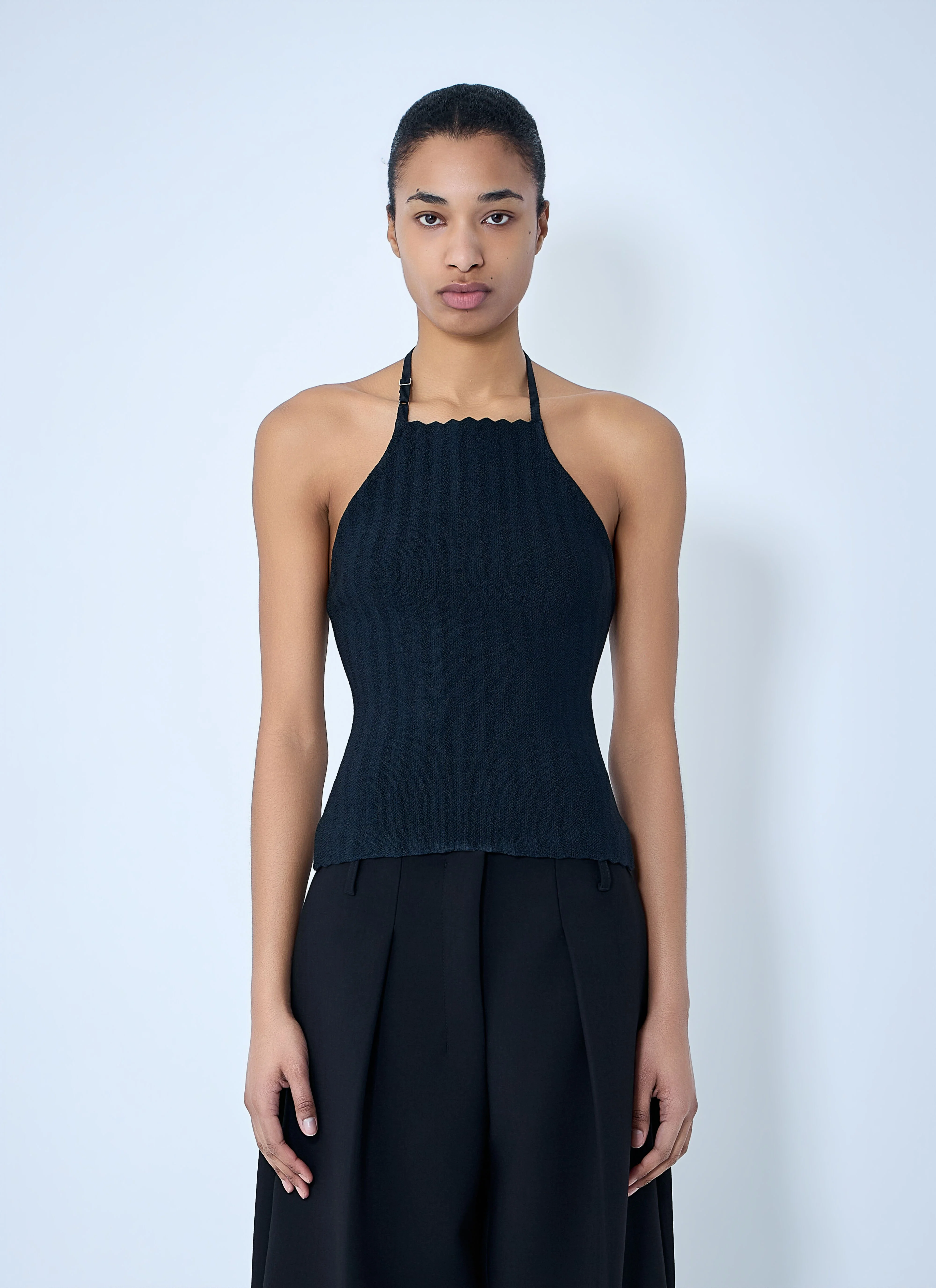 Halter neck ribbed top in textured knit. - Halter neck - Sleeveless - Ribbed texture - 88% Viscose, 12% Polyester - Color: Navy - Code: 26ETOW00874AK00307 390