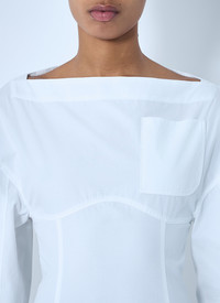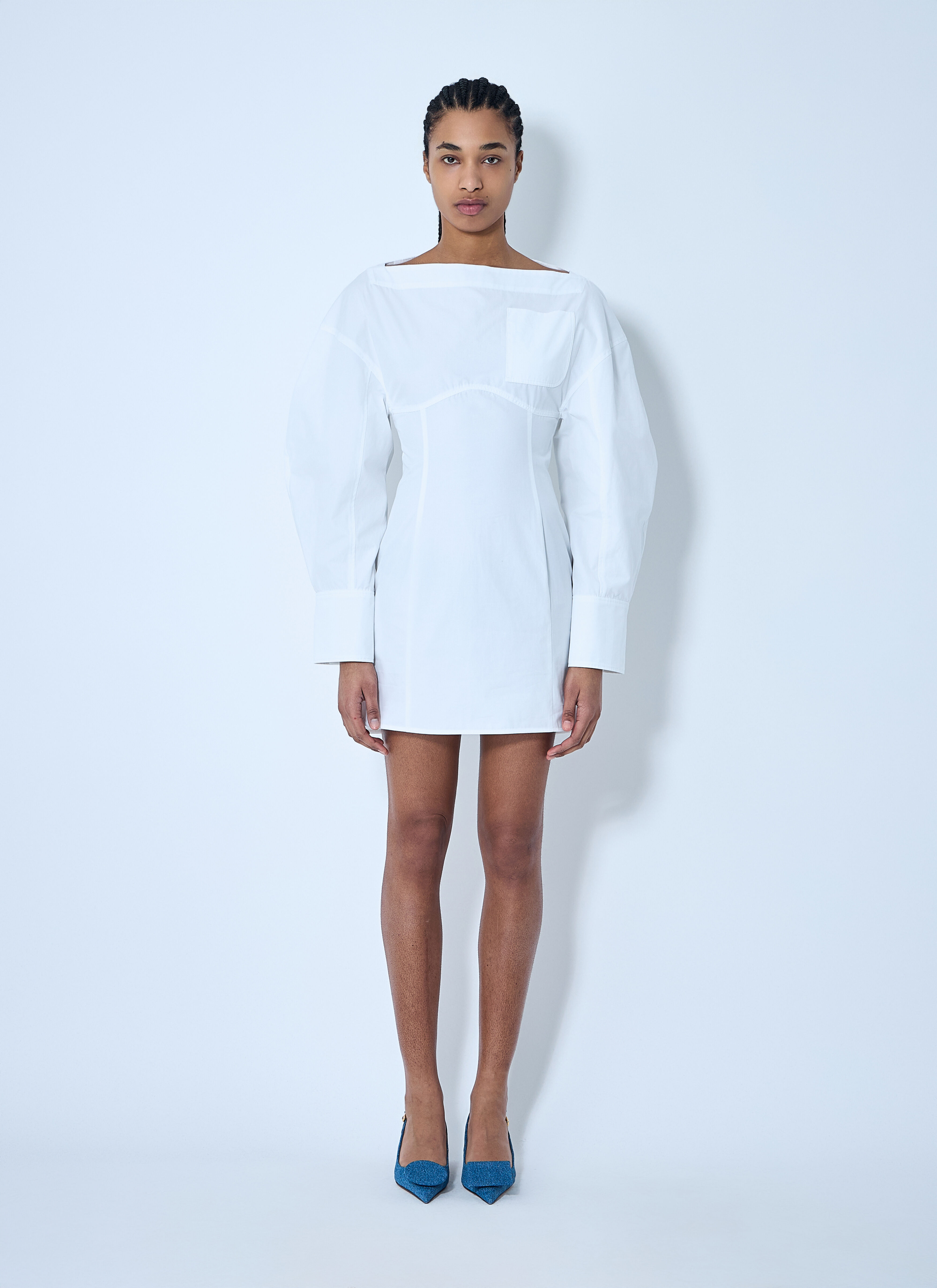 Cotton mini dress with sculptural design. - Boatneck - Rear zip fastening - Long sleeves - Adjustable strap at rear - 100% Cotton. Dry clean - Color: White - Code: 24H243DR199-1520 100