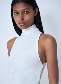 Halterneck dress in smooth weave. - Halterneck neckline - Rear button closure with side zip fastening - Gathered - 100% Technical Fabrication Blend. Dry clean - Color: White - Code: 25HDRW00722AW00211 100