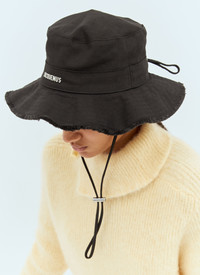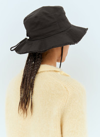Le Bob Artichaut bucket hat in cotton twill. - Flat crown - Dropped brim - Front logo plaque - Chin strap - Rear drawstring fastening - Raw trims - 100% Cotton - Color: Black - Code: 22EACU00002AE00014 990