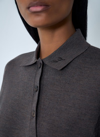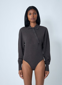 Bodysuit in wool-blend knit. - Classic collar - Front button fastening - Long sleeves - Logo embroidery at collar - Bottom snap-button fastening - Rib trims - 98% Wool, 2% Polyamide. Dry clean - Color: Dark Brown - Code: 25HBSW00598AK00145 880