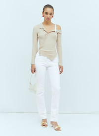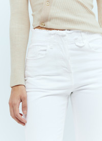 La de Nimes Linon jeans in garment-dyed denim. - Mid rise - Raw waistband - Top-button and button-fly fastening - Belt loops - Five pockets - Made in Italy - 100% Cotton. Machine wash - Color: White - Code: 23H233DE030-1016-100