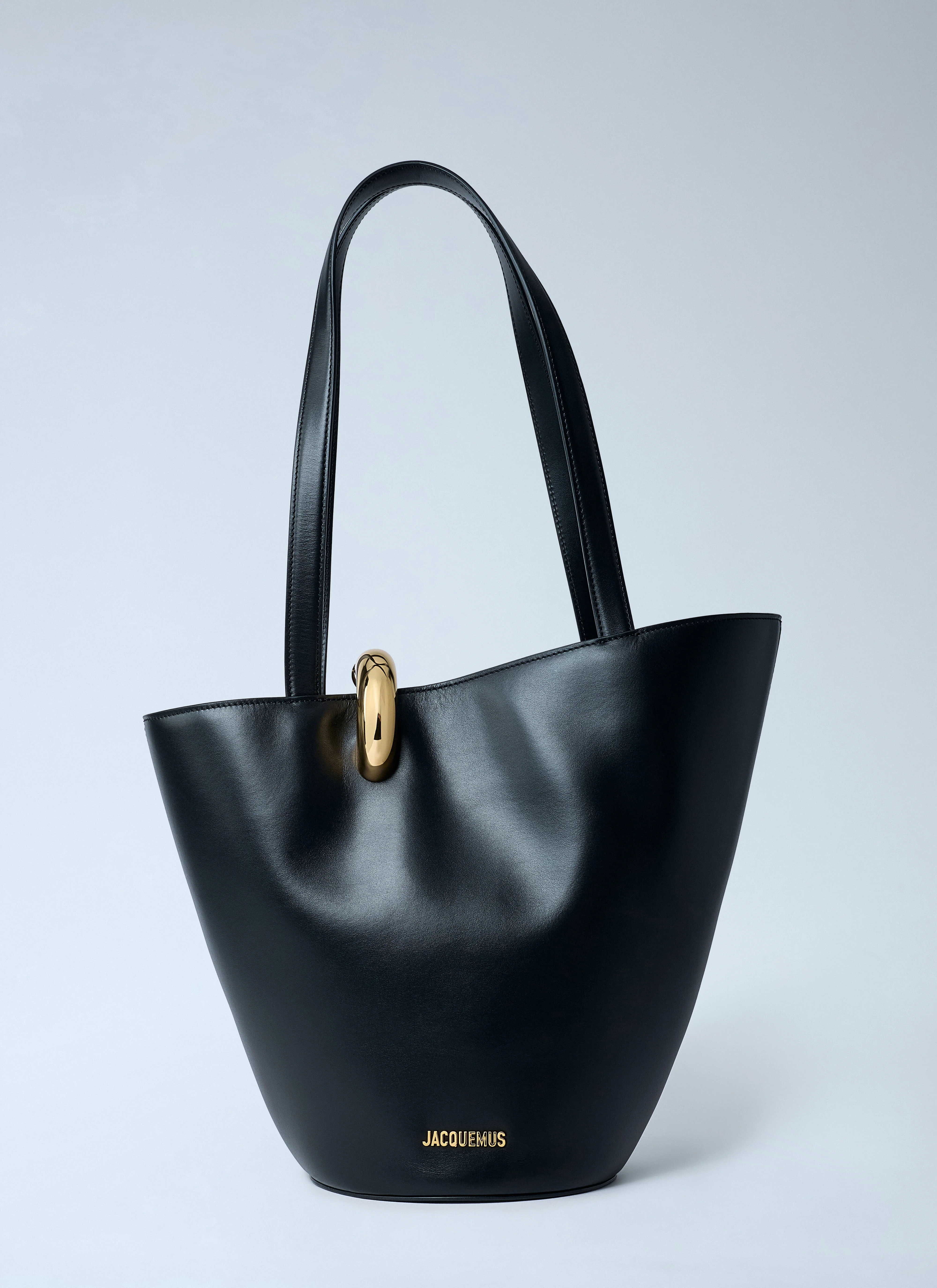 Le Petit Bambola bucket bag in leather with gold-tone hardware. - Twin top handles - Adjustable shoulder strap - Open top with clasp fastening - One main compartment - Interior zip pocket - 100% Leather. Lining: 100% Cotton - Color: Black - Code: 25EBAW00412AC01C01 990