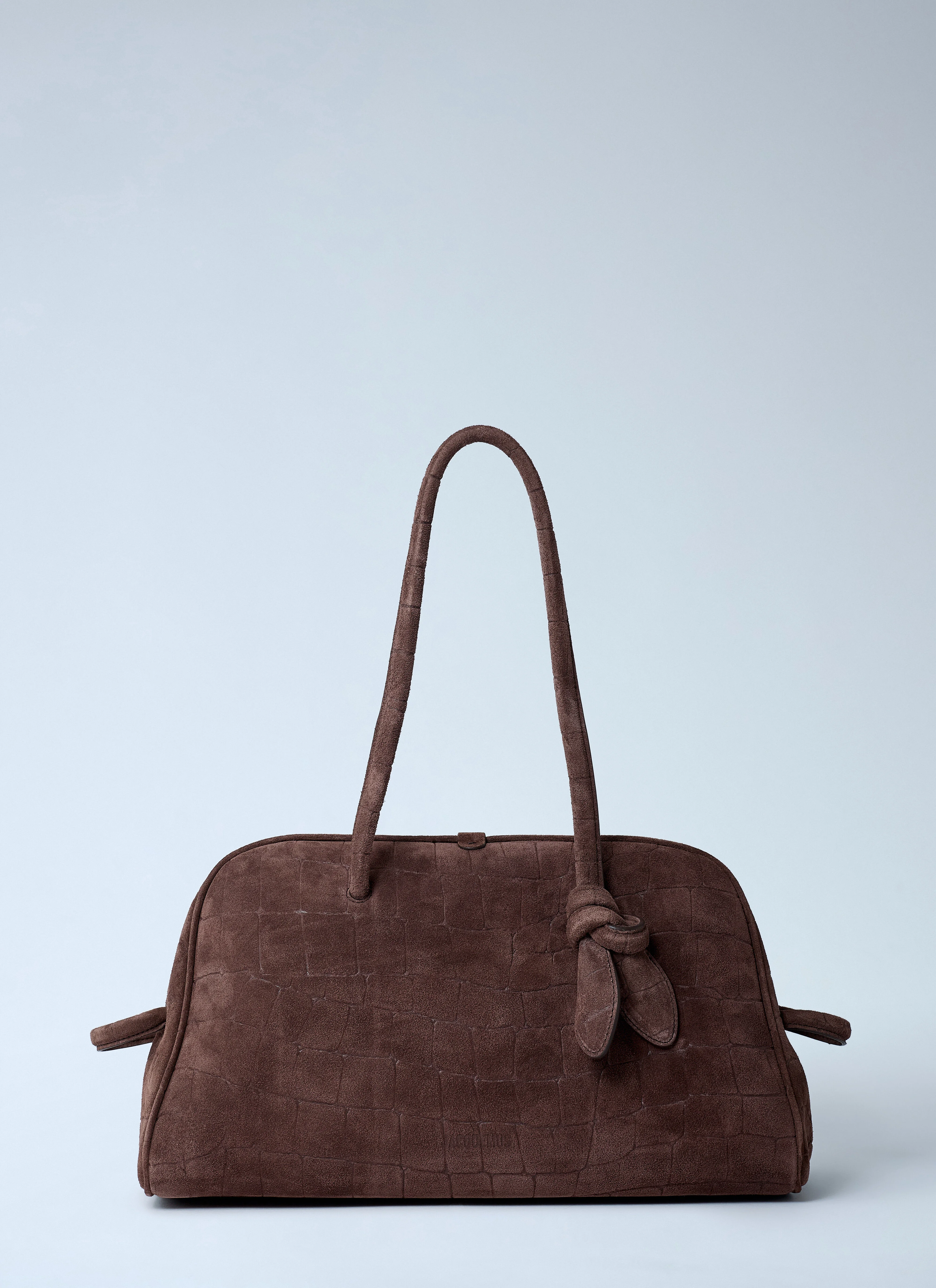 Leather in suede finish - Twin handles - Magnetic closure with zip fastening - One main compartment - Front embossed logo motif - Side tabs - Interior zip fastening pocket - Made in Italy - 100% Leather - Color: Dark Brown - Code: 25EBAU00417AC07A09 880