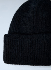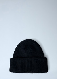 Logo motif beanie hat in wool-blend knit. - Round crown - Folded brim - Front logo motif - 70% Wool, 30% Polyamide - Color: Black - Code: 24HACU00666AK00227 990