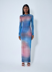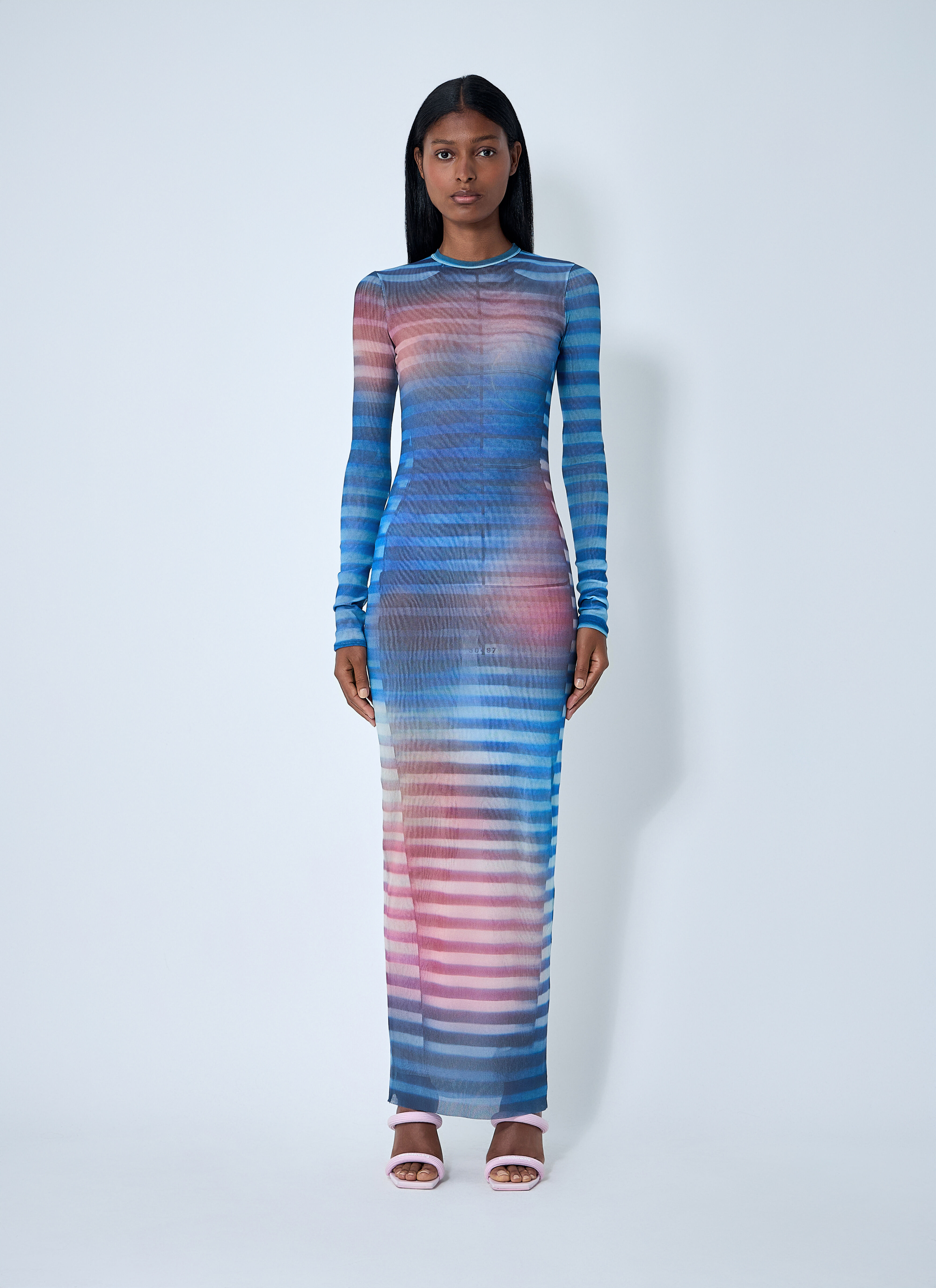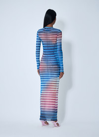 Mesh maxi dress in Air print. - Crewneck - Long sleeves - Semi-sheer - 100% Polyamide. Hand wash - Color: Blue - Code: 25/03-W-DR030-M005P-565034